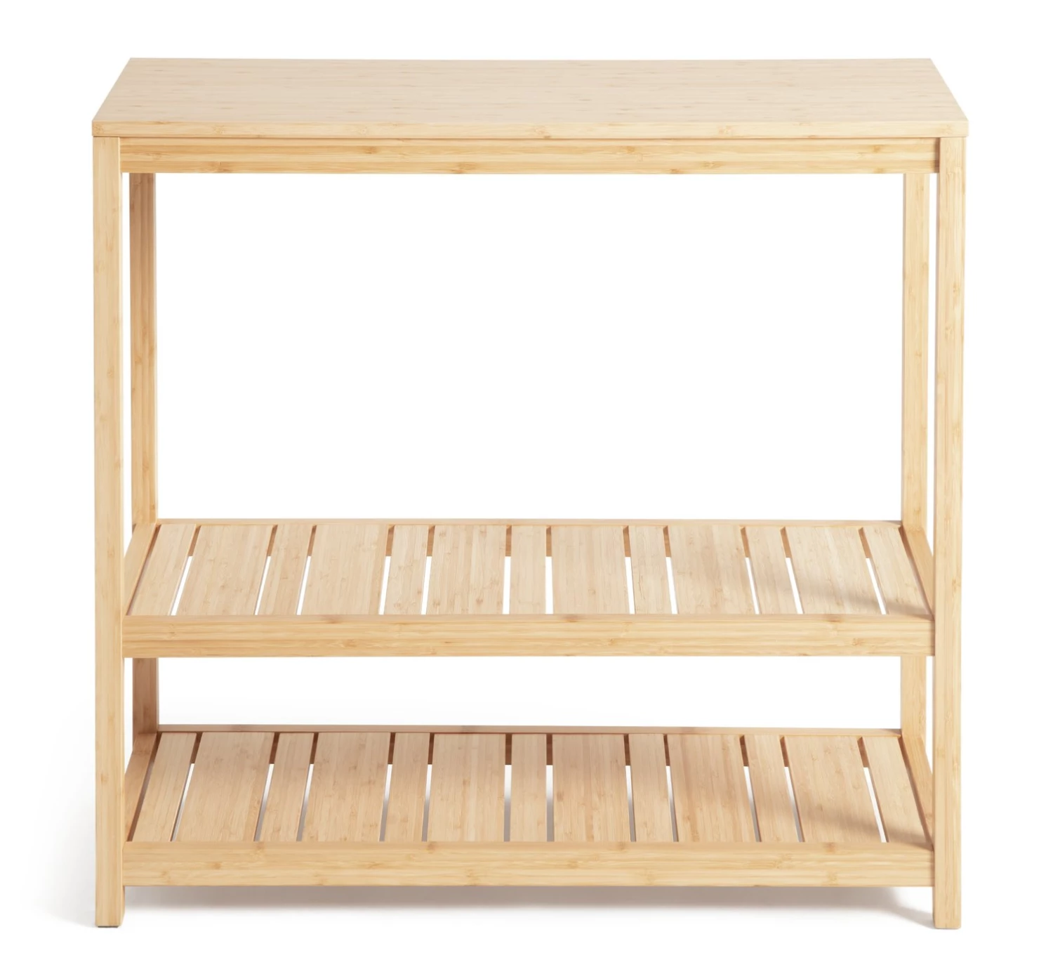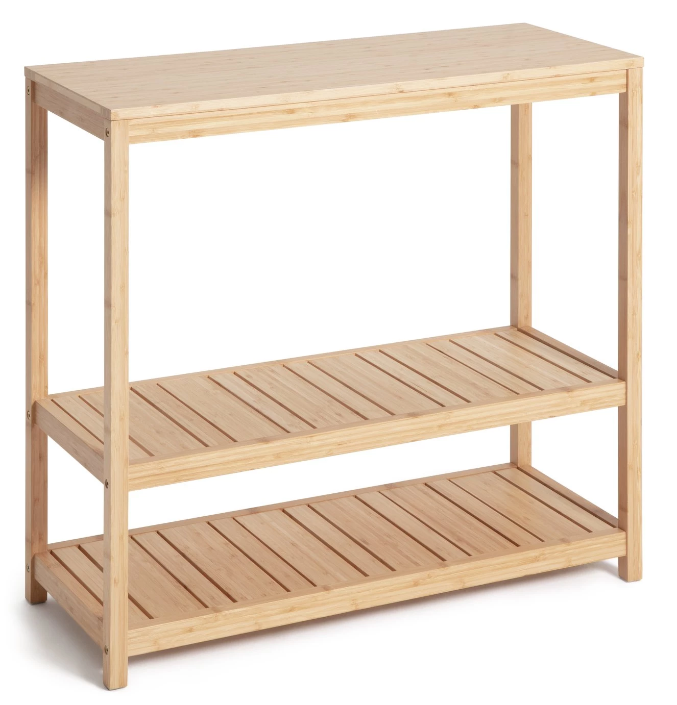 A spacious top provides plenty of space for display items like vases and faux foliage. While slatted undershelves provide storage room for books, files, baskets and pots. Friends coming over? Pop on a drinks tray with a few nibbles ready to serve. Hooray for flexible furniture.