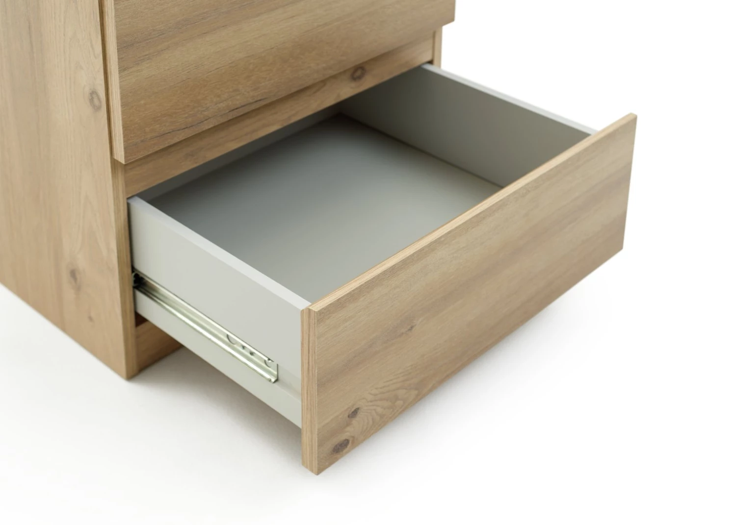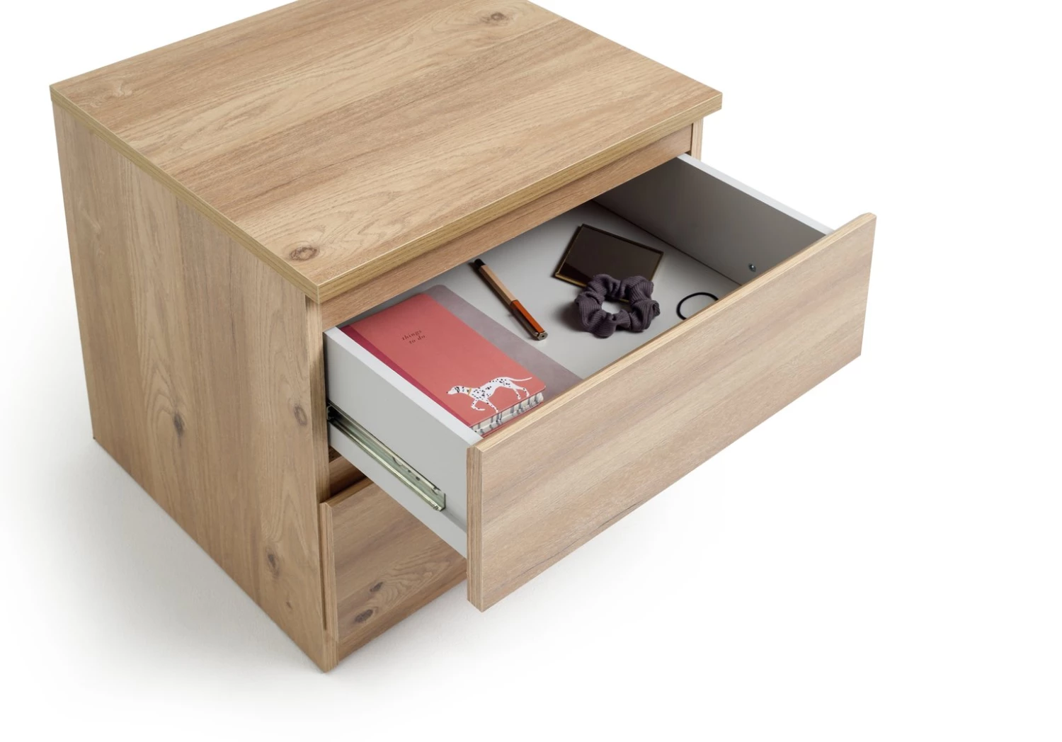 A simple, streamlined design. With 2 soft close drawers, our Jenson bedside table keeps everything you need close to hand. The drawers glide easily on smooth metal runners, handleless fronts give a contemporary look, and the natural oak brings a fresh feel. Top with a lamp, plant or picture frame for a personal touch. Bedside bliss.