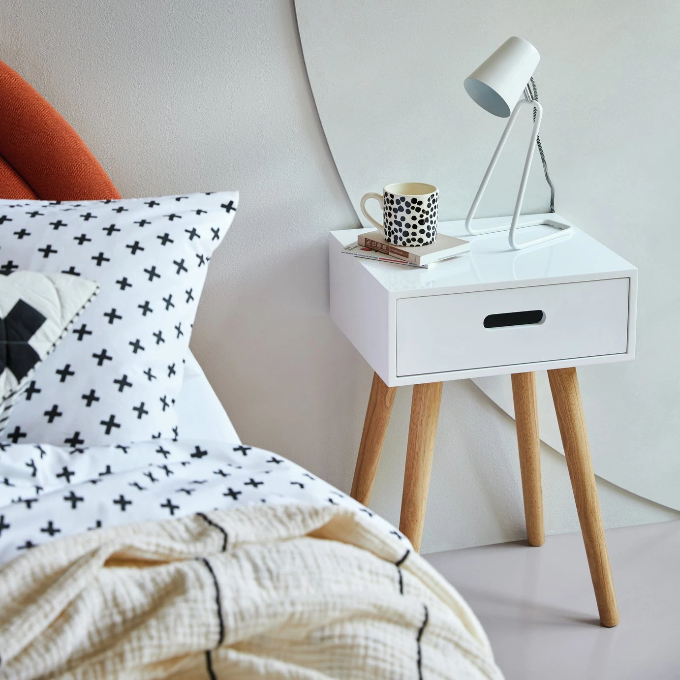 For the home obsessed. This nifty cabinetry is made from gloss-lacquered wood and features rubberwood legs. The Habitat Cato side table makes a handy ledge for your drinks. It has a drawer for storing away a few of your favourite books. Transform that nook in your lounge into a display space. It makes a great bedside table too or holds your keys and mail in the hallway. Fresh look, fresh idea.