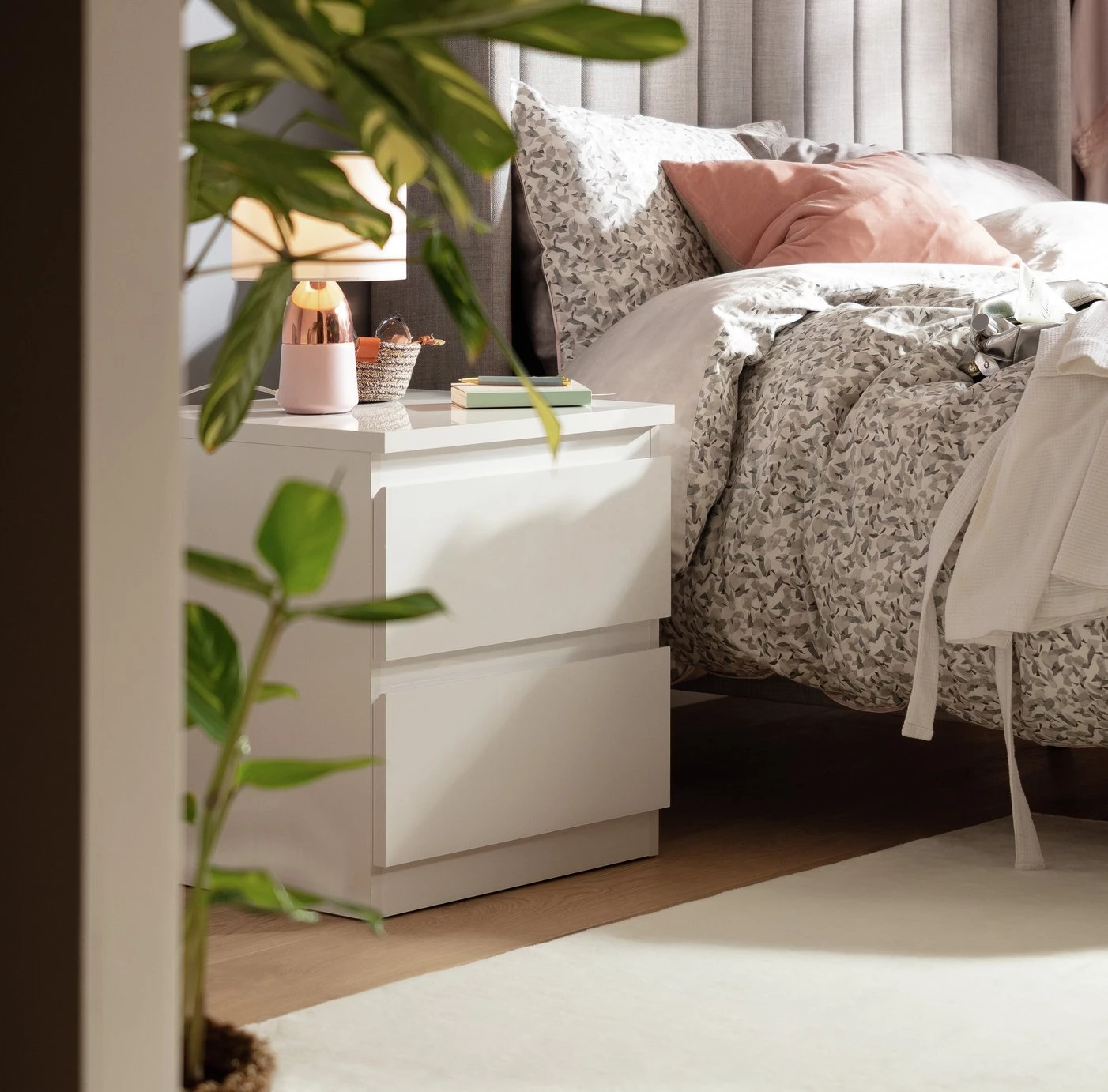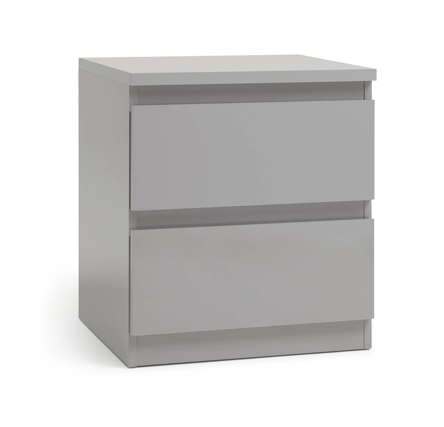 A simple, streamlined design. With 2 soft close drawers, our Jenson bedside table keeps everything you need close to hand. The drawers glide easily on smooth metal runners, handleless fronts give a contemporary look, and the grey gloss surface reflects light for a fresh, modern feel. Top with a lamp, plant or picture frame for a personal touch. Bedside bliss.