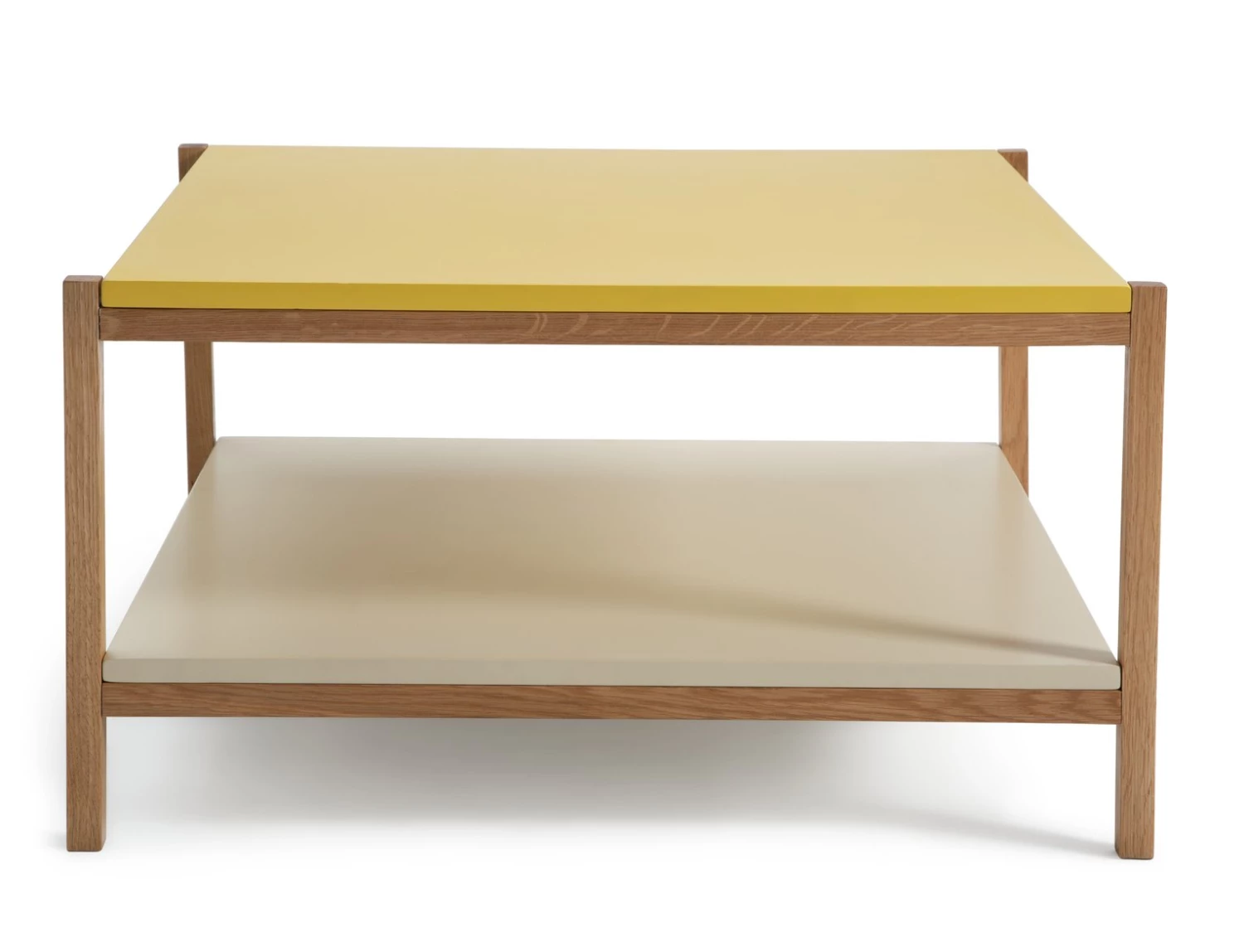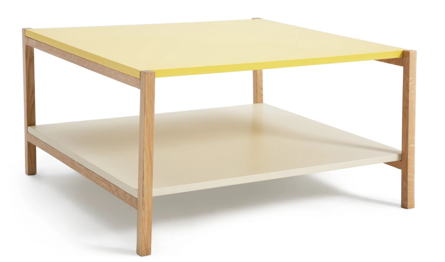 Bright and beautiful. This bold coffee table is a ray of sunshine to liven up that lounge. With 2 sturdy shelves in lemon yellow and eggshell white, this modern design brings a playful pop of colour wherever it goes. Neatly stack your books or magazines on the bottom and show off with a plant or funky lamp on top. Fresh as a daisy.
