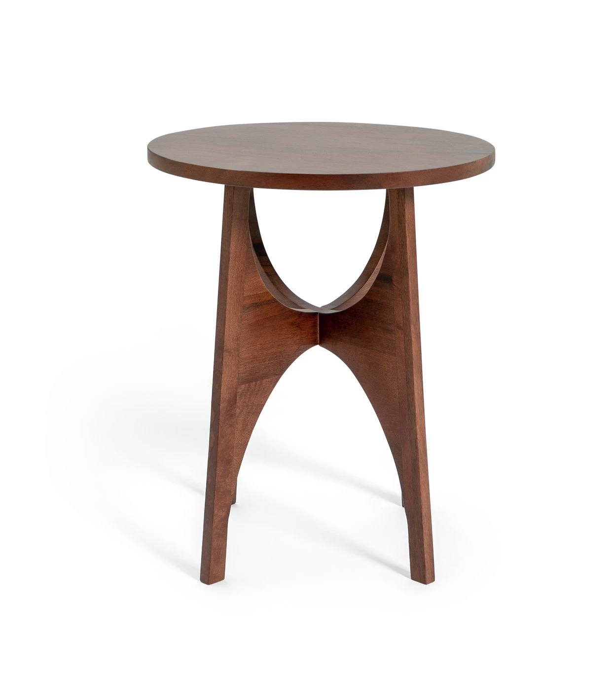 Bring a touch of side table retro to your lounge. Sloping curves meet a smooth circular top in classic mid-century style. Crafted in walnut finished mango wood, this piece is designed to look authentic but offers all the benefits of lightweight modern materials. Clever stuff. The ideal resting spot for night time nibbles, a contemporary lamp or faux plant. We love it.