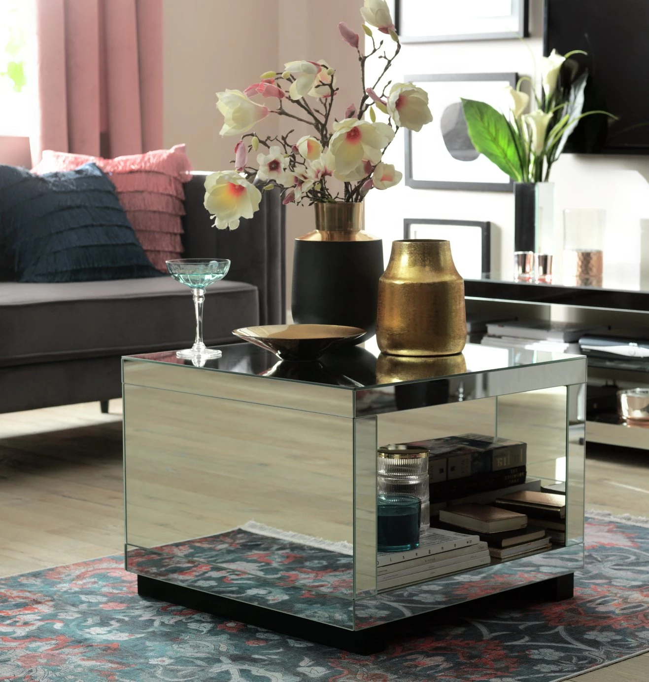 Modern, mirrored and magazine worthy. Whichever way you look at it this is one cool coffee table. Every side of the contemporary cube design bounces light to make your space appear brighter and bigger. And naturally, it goes with any decor. No wonder interior designers love mirrored furniture. A dazzling little table that reflects your style.