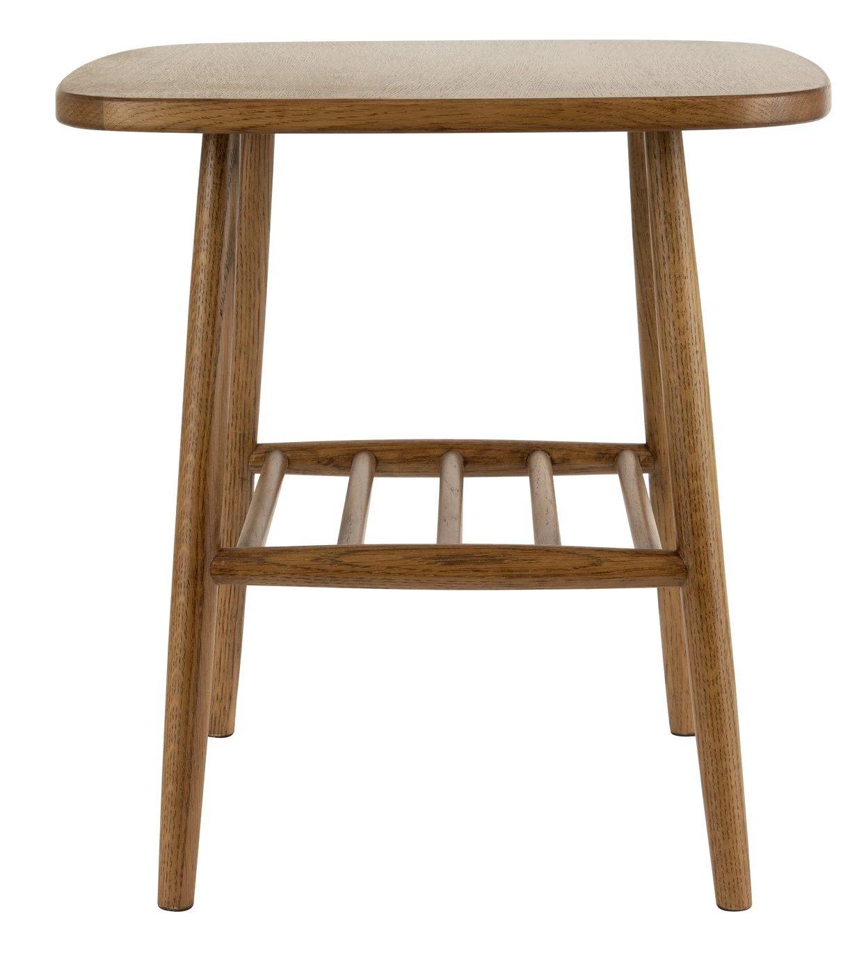 Oval meets square with the Cornelia side table. Crafted with beautifully rounded edges and a sleek walnut finish, there's plenty to love when it comes to this neat little side table. Featuring a slatted shelf that's great for books or ceramics, it's the perfect accompaniment to your living space.