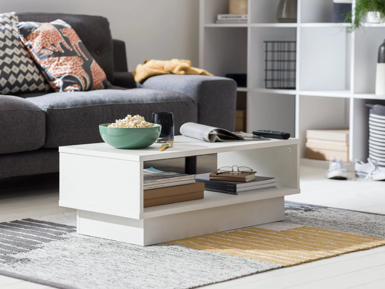 Compact, clever, Cubes. The Habitat Cubes collection is great for smaller spaces. This coffee table's open design creates an airy, spacious look. It is handy for breaking up the open space in your lounge and giving you somewhere to put your feet up, of course. Use the cubby space to hold books, magazines, or newspapers then pop some coasters on the top for drinks. Available to take home today, you could be sitting back with a cuppa and a good book by tea time.