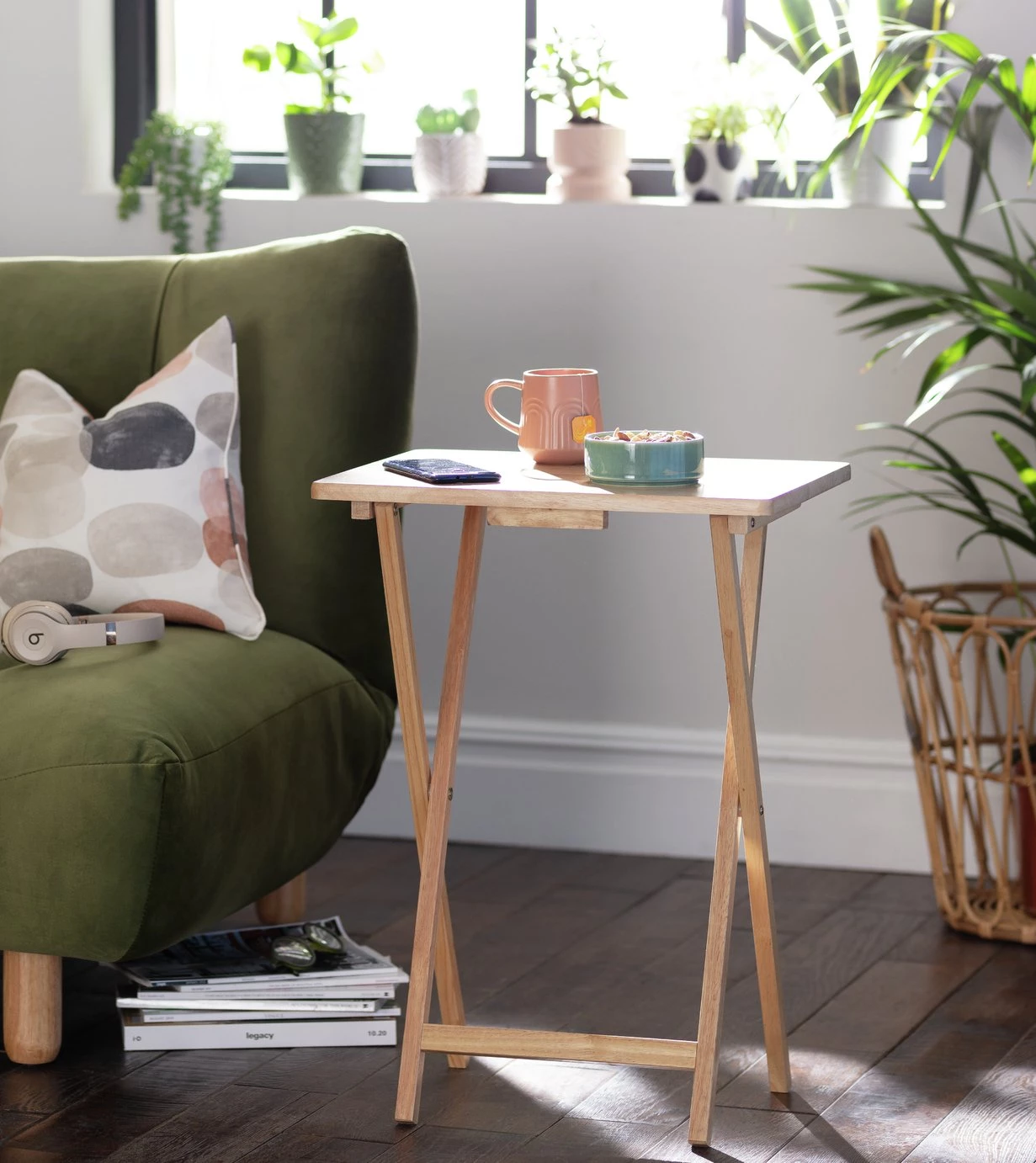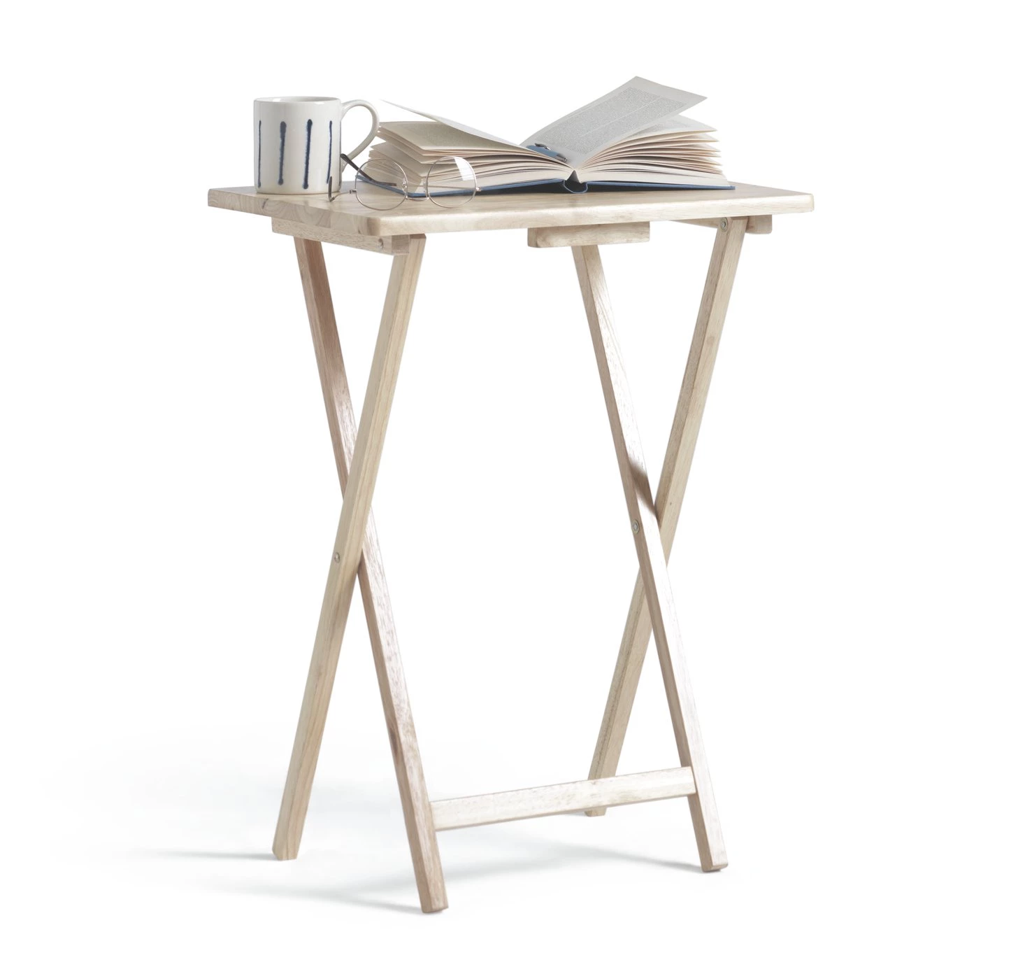 Tuckable table. The Habitat single folding tray table is a handy little chap. In a delightful natural tone, it provides a surface suitable for all manner of tasks. A home for a lamp, a space for some crafting or a place to pop your laptop or dinner tray. It's perfect for a bit of impromptu entertaining too. This versatile table can also be popped by the bedside to hold your meds and alarm clock. It folds up too, so you can tuck it away until you need it. A useful pick.
