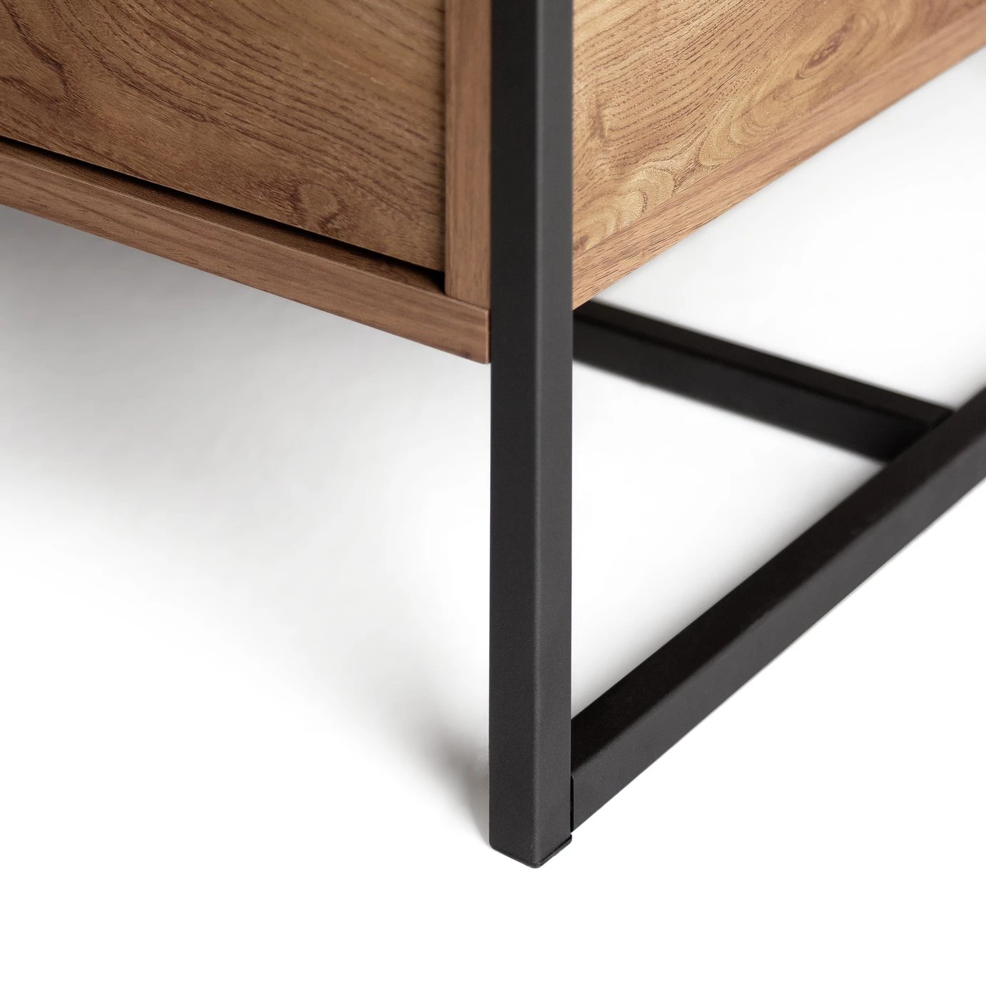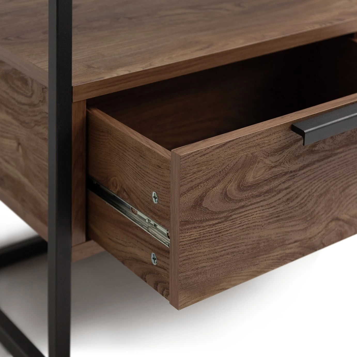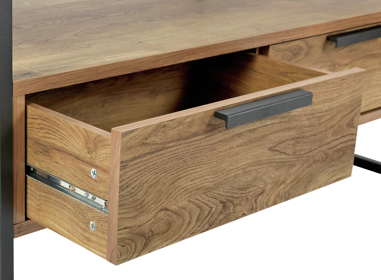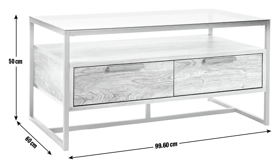 Tap into industrial chic. The Habitat Nomad coffee table's mix of metal framework and rich wood-effect finish stuns. Get your living space in order. There are 4 drawers iit looks great from any angle. It also gives you plenty of space to tuck lounge clutter away. The top is made from pristine glass to keep the design open and airy.